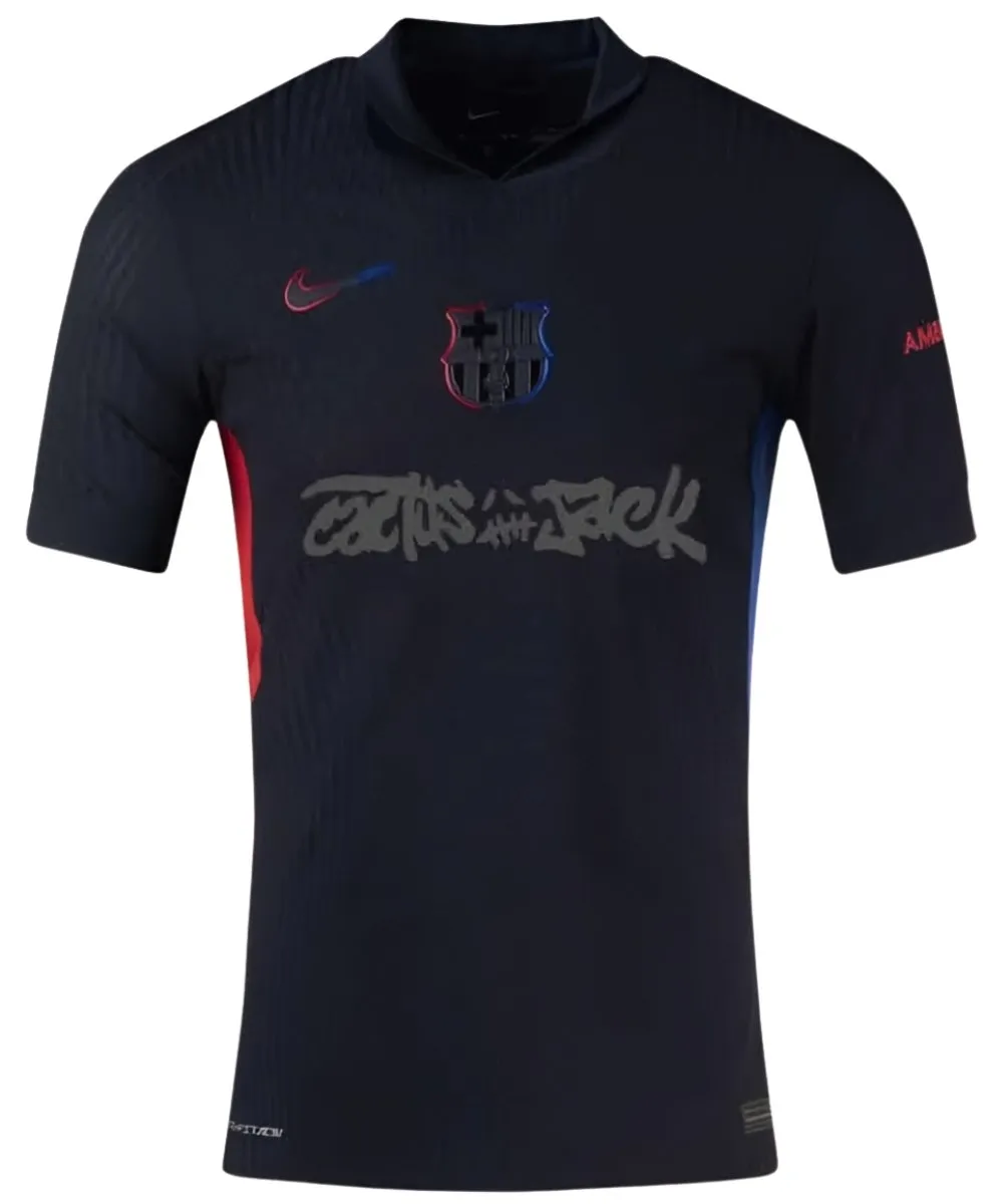 FC Barcelona x Travis Scott Away Black Limited Edition 2024-25 Jersey with Cactus Jack Logo on front!